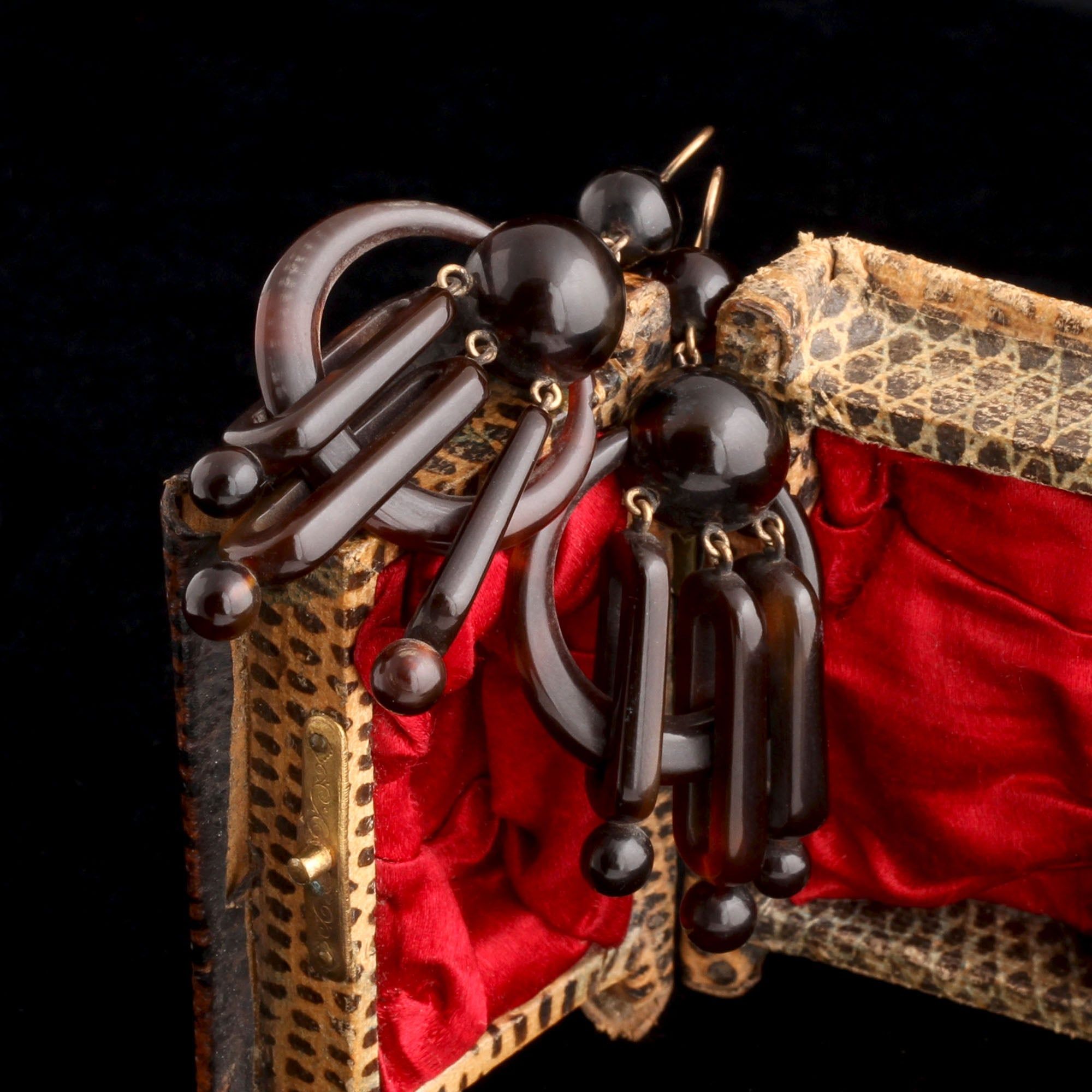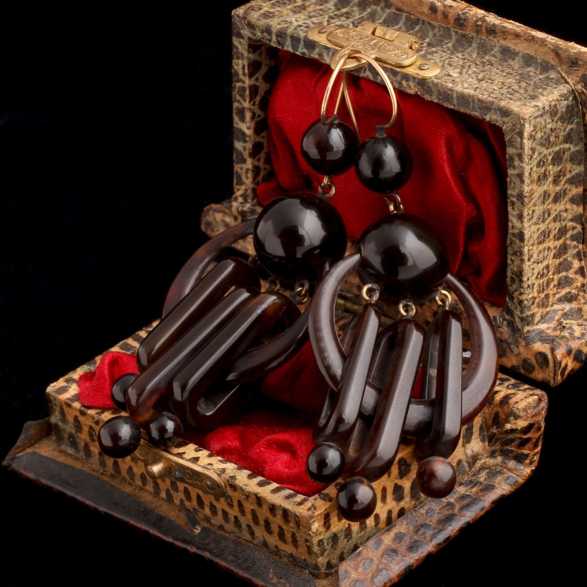 The ability to use heat for shaping made tortoiseshell an ideal jewelry material in the 19th century. Plastic hadn't been developed yet, but tortoiseshell (from Hawksbill and Loggerhead turtles) had been in use since ancient Rome.